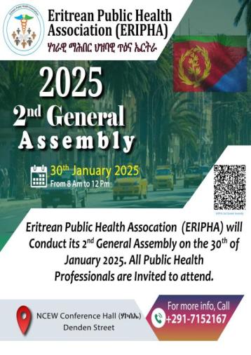 The Eritrean Public Health Association (ERIPHA) is pleased to announce the upcoming 2nd Congress of the General assembly.