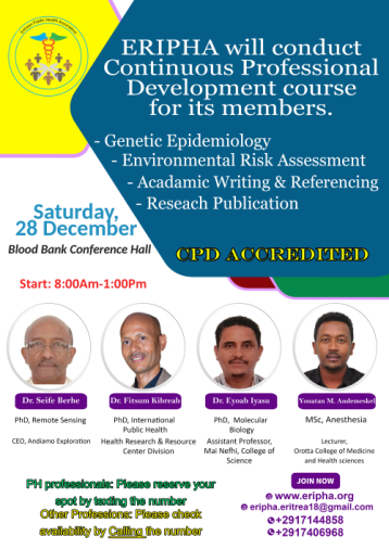 Asmara, Eritrea – The Eritrean Public Health Association (ERIPHA) is pleased to announce the organization of a Continuous Professional Education ...